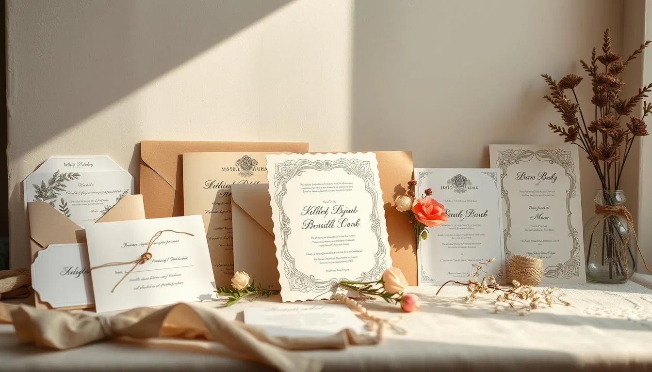 Nachhaltige und naturinspirierte Einladungen gewinnen zunehmend an Bedeutung. Charakteristisch sind: