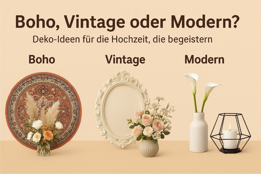 Kaum ein Tag ist so besonders wie der Hochzeitstag. Alles soll perfekt sein: das Kleid, die Musik, das Essen – und vor allem das Ambiente. Dabei spielt der gewählte Dekorationsstil eine entscheidende Rolle. Ob Boho, Vintage oder modern – jede Stilrichtung verleiht der Feier ihre eigene, unverwechselbare Note. Und genau das macht Hochzeiten heute so spannend: Es gibt keine festen Regeln, sondern unzählige Möglichkeiten, um die Persönlichkeit des Brautpaars und ihre Geschichte in Szene zu setzen.