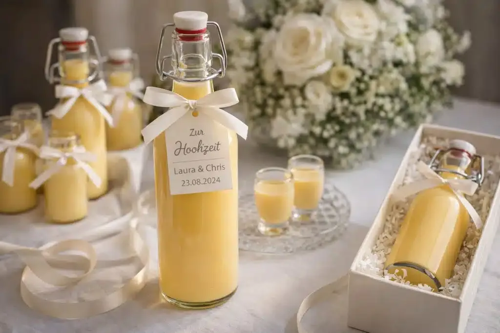 Eierlikör kann auf einer Hochzeit als persönliches Gastgeschenk, als hochwertiges Präsent für das Brautpaar oder als Teil der Getränkekarte eingesetzt werden. Jede Nutzung stellt unterschiedliche Anforderungen an Menge, Verpackung und Präsentation.