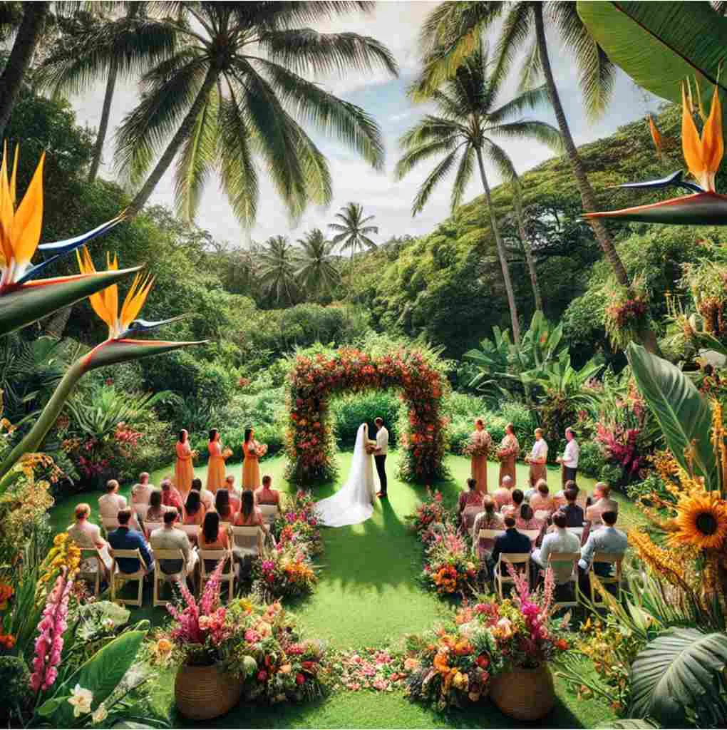 - Zeremonie planen: Traditionelle Elemente einbauen – Lei-Austausch, hawaiianische Musik?