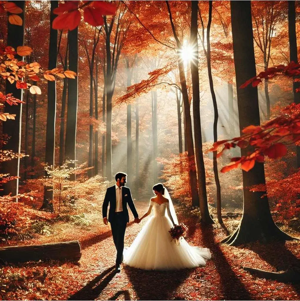 Herbst: Die bunt gefärbten Blätter und die goldene Abendsonne schaffen eine romantische Stimmung, die einfach perfekt für Hochzeitsfotos ist. Zudem ist die Erntezeit in Franken – warum nicht das Menü mit regionalen Köstlichkeiten wie Kürbis und Wild aufpeppen?