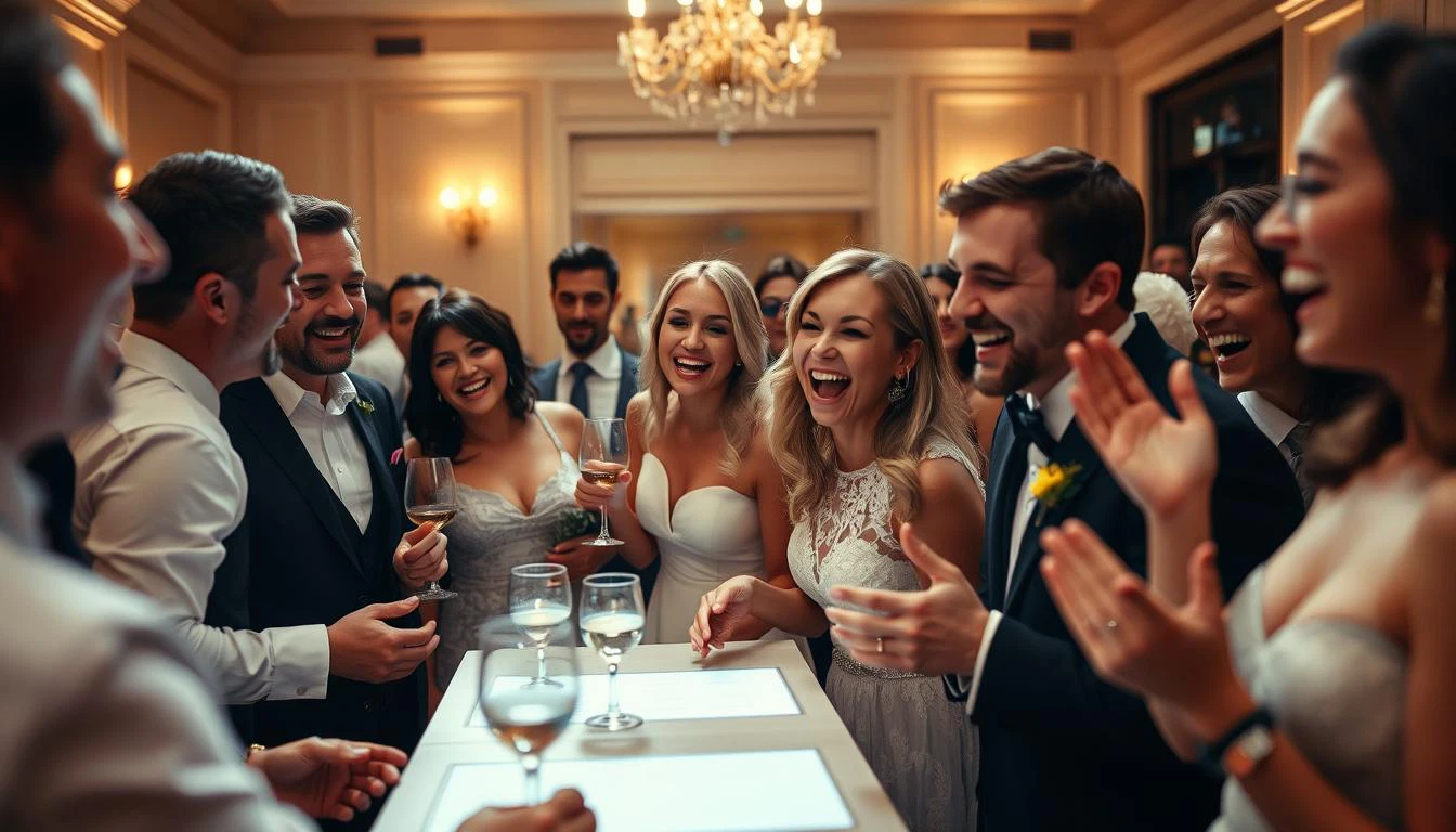 Bei Kreative Hochzeitsspiele geht es darum, persönliche Geschichten zu teilen. Ermutigen Sie Gäste, ungewöhnliche Lebensereignisse zu präsentieren. Dies macht die Hochzeitsunterhaltung lebendig und bindungsfördernd.