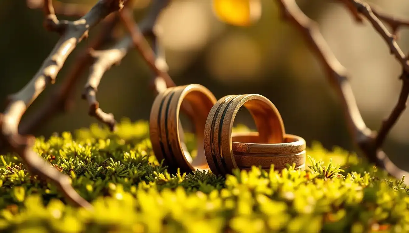 Nachhaltige Eheringe aus Holz symbolisieren nicht nur eine umweltbewusste Entscheidung, sondern auch die individuelle Verbundenheit eines Paares mit der Natur.