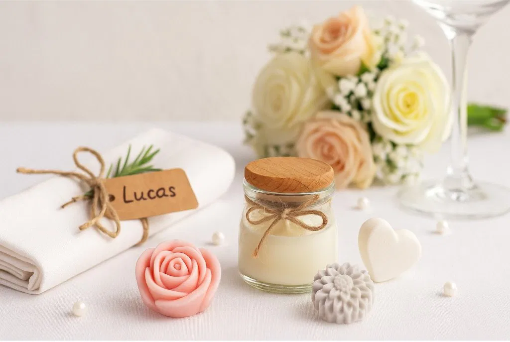 Besonders beliebt sind DIY-Giveaways, die gleichzeitig als Tischdeko dienen können. Kleine Seifen in Blumenform, zart duftende Kerzen oder liebevoll gestaltete Gipsfiguren sind nicht nur hübsch anzusehen, sondern auch praktische und emotionale Mitbringsel für Ihre Gäste. Sie machen sich gut neben dem Namensschild, dienen als Gesprächsthema und finden später ihren Platz im Badezimmer, auf dem Nachttisch oder im Regal – als kleine Erinnerung an einen besonderen Tag.